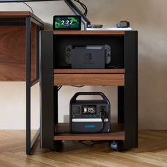 天板も含め合計3段の棚板は、見えない裏側ですべて繋がっているため、どこに置いたガジェットでも充電可能です。
